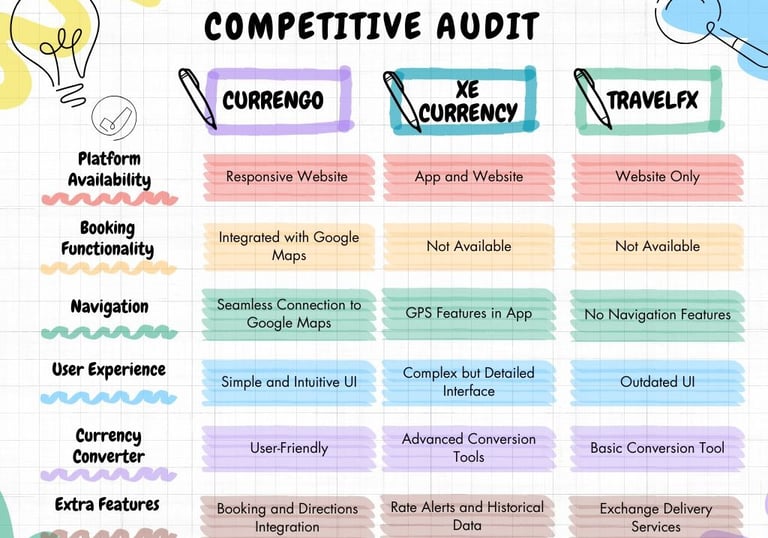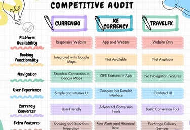 I analyzed existing platforms like XE Currency and TravelFX to identify gaps 🔎 in features, usability, and seamless navigation 📍.